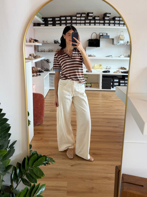 Coordinato composto da gilet lungo e pantalone wide leg leggero Composizione 83% ramiè 17% cotone TAGLIA UNICA da XS a L