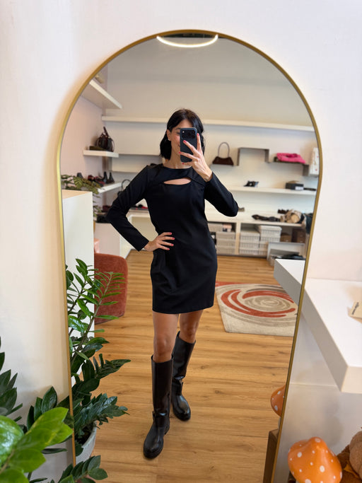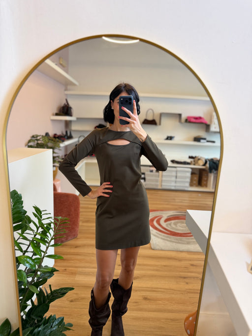 Abito con apertura sul decollètè Modello svasato Composizione: 58% viscosa , 35% polyamide , 7% Elastan Made in Italy Lunghezza circa 84/85 cm ...