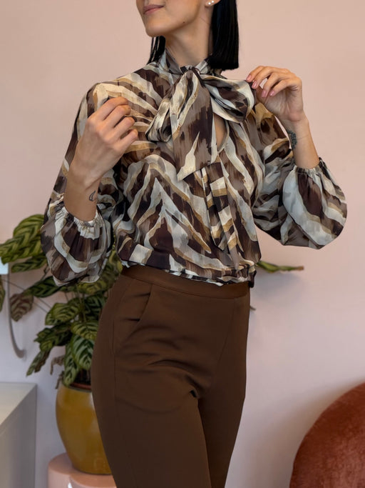 Camicetta con fiocco in georgette fantasia Made in Italy Polyestere