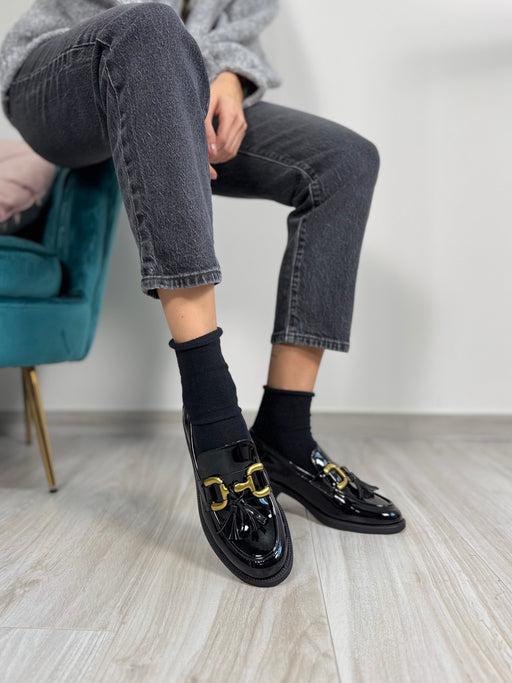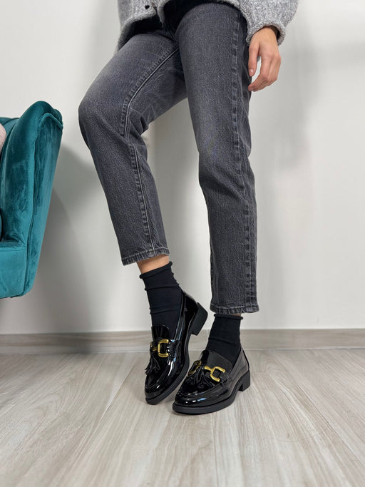 €75,00 - €75,00€75,00€75,00 - €75,00€75,00Mocassino Claudia NEROMocassino in vera pelle Calzata regolare Tacco 3 cm €75,00 - €75,00€75,00€75,00 - €75,00€75,00Risparmia il 0% Risparmia il %