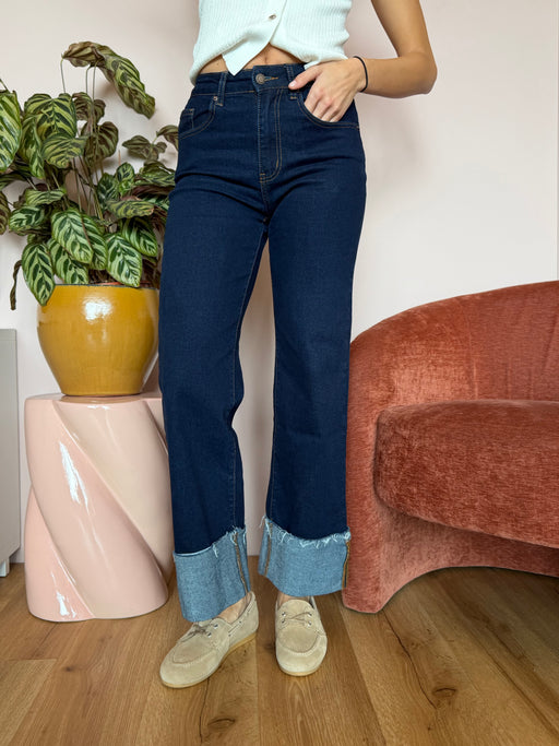Jeans lavaggio scuro con risvolto vita alta Vestibilità regolare 63% cotone 30% poliestere 7% viscosa