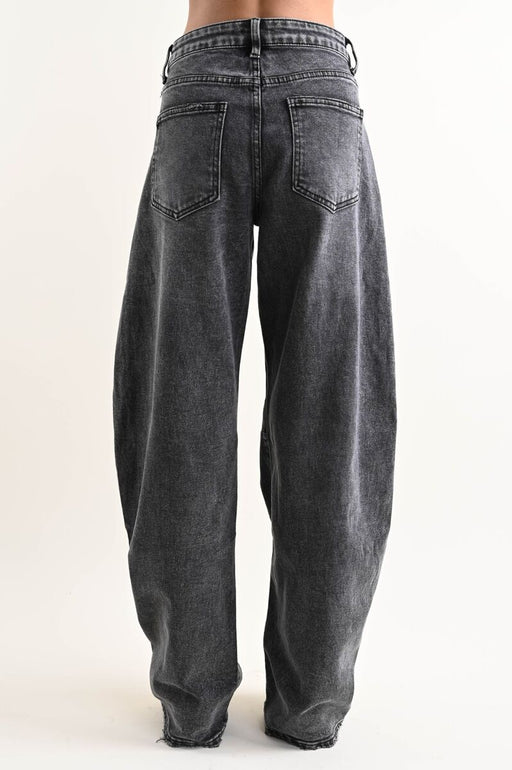VESTE PICCOLO Jeans color grigio scuro modello balloon, con cinque tasche e cucitura in evidenza orizzontale in corrispondenza del ginocchio, che ...