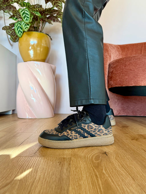 Sneakers in vera pelle stampa leopardata Calzata regolare Soletta removibile 4 cm rialzo
